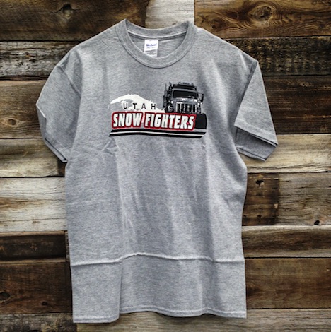 This soft heather gray Utah Snow Fighters t-shirt is available in M, L, XL, XXL, and XXXL.