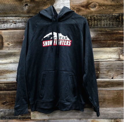 Black hoodie with red accents and Utah Snow Fighters logo.